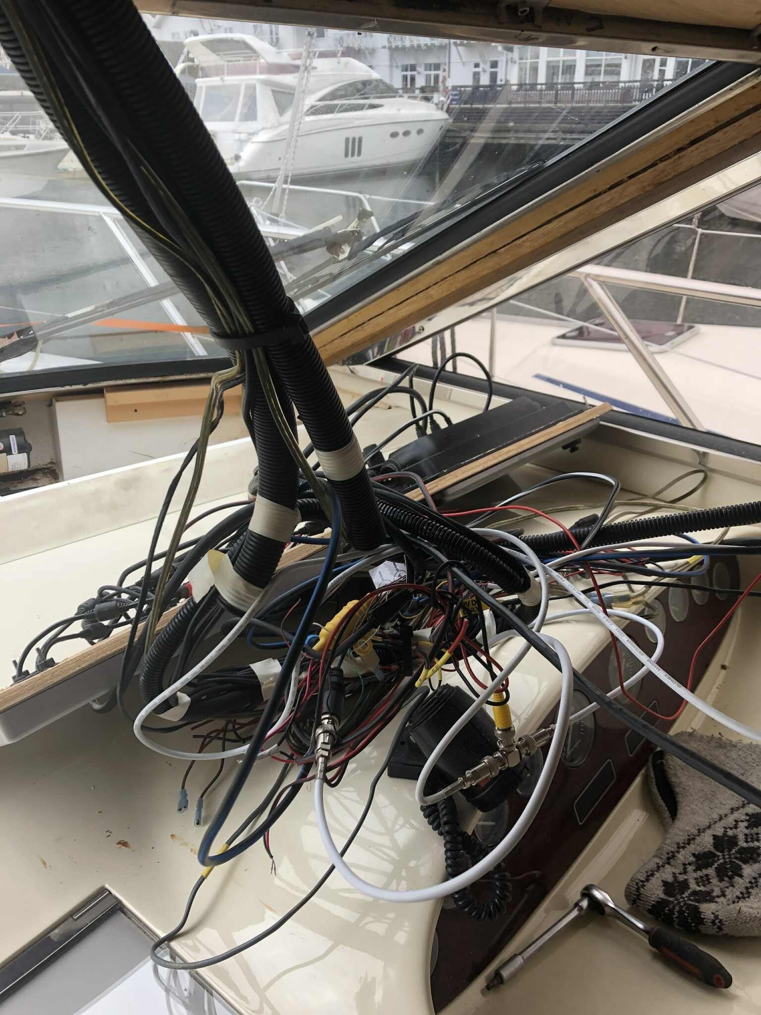 Motormessig har vi byttet en aksel, som hadde feil dimensjon. Båten har nok grunnstøtt en gang og kroka en aksel. Ellers har vi satt i diselvarmer og fjernet en watermaker. Den tok uhorvelig stor plass. Vi har byttet baugtrusteren som var der ved kjøp til en litt større.